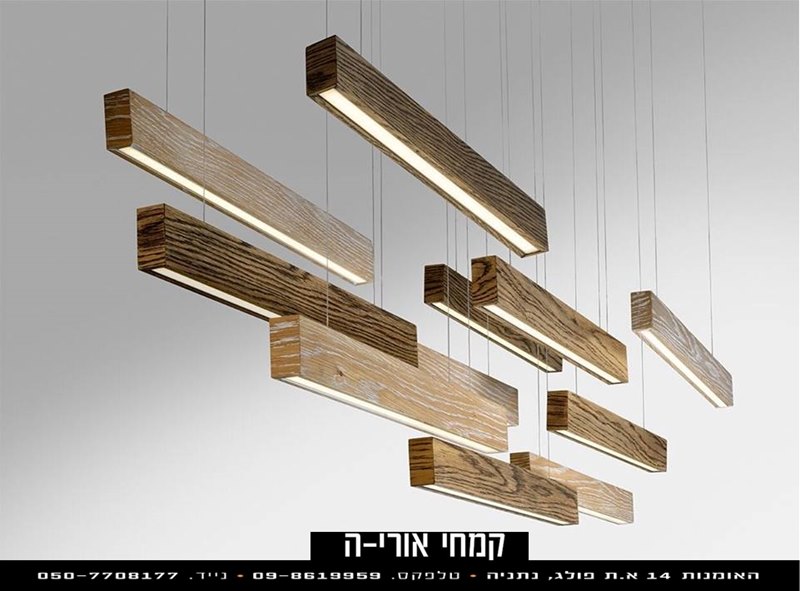 גוף תאורה עץ בתליה על בסיס מגשר.