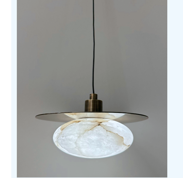 גוף תאורה עשוי מאבן אלבסטר טבעית (שיש) תלוי דקורטיבי מעוצב להארת סלון, חדרים, מטבח, משרדים וכדומה.